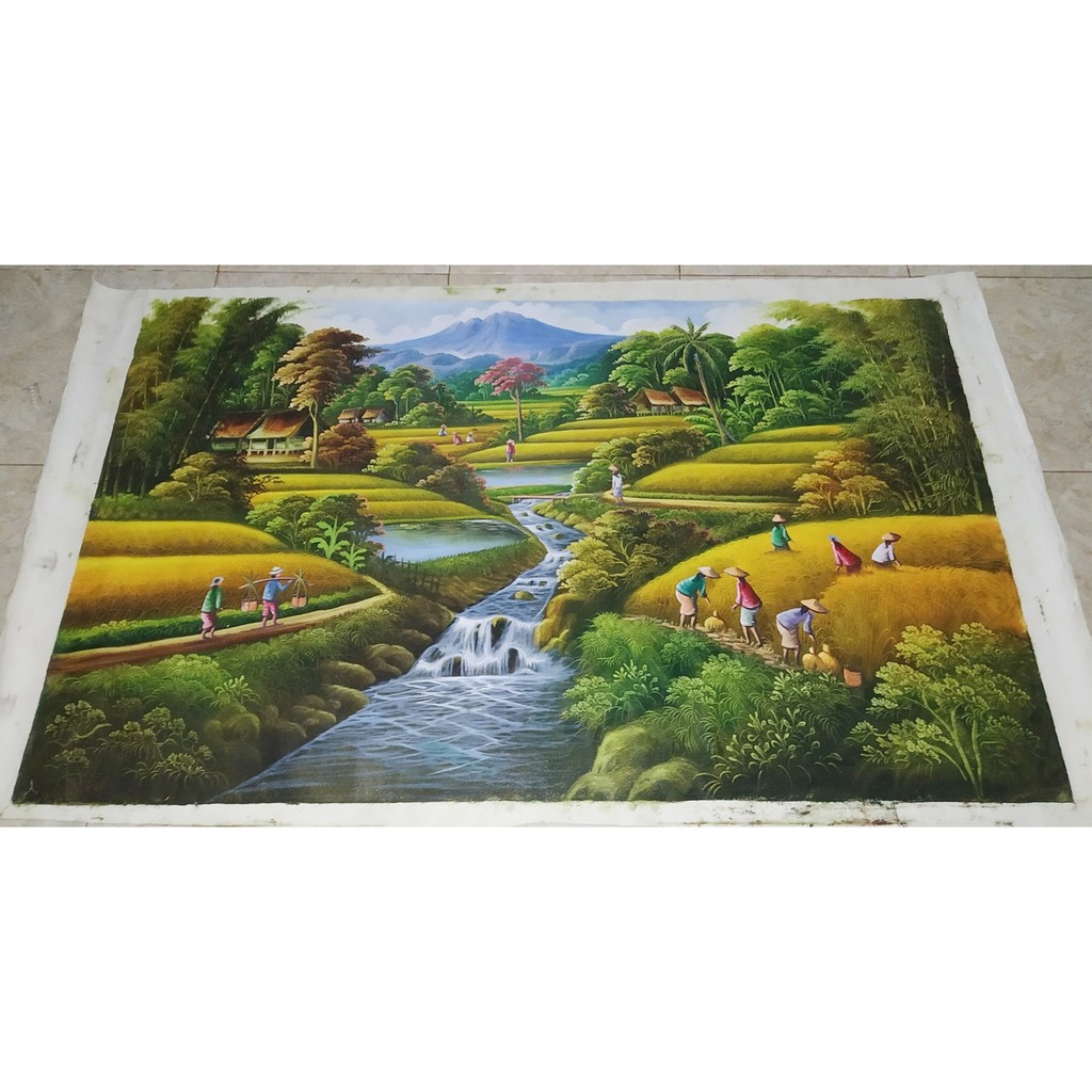 Lukisan Pemandangan Gunung Yang Indah Jual Lukisan Pemandangan Panen Padi Yang Sangat Indah Ukuran 135 X Lukisan Pe Pemandangan Pemandangan Yang Indah Gambar