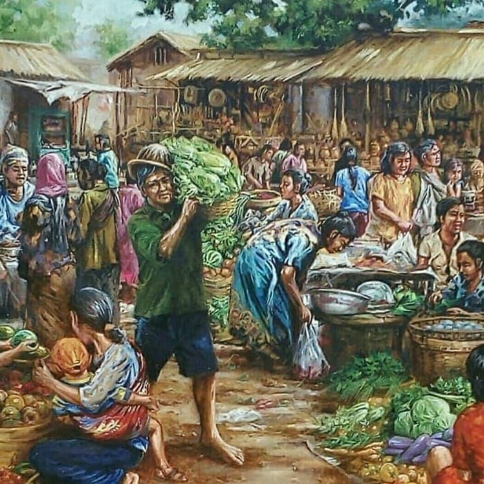 20 Gambar Lukisan Pasar Tradisional